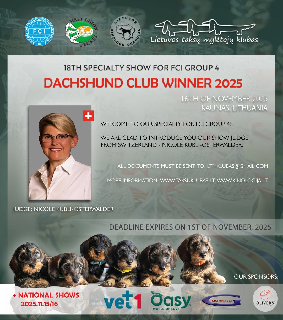 1. | Trumpaplaukiai taksai (Dachshund Standard Kurzhaar) | 1-25 | 10:00 |
